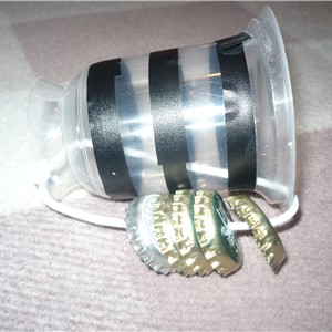 Do koulí nasypeme náplň, je dobré každou kouli naplnit něčím jiným, ať jsou zvuky co nejpestřejší. Koule přelepíme izolepou, aby se náhodou nevysypal obsah. Takto naplněné koule navlékneme na kloboukovou gumu a tu natáhneme například mezi nohy od postýlky či stolu nebo mezi dva stromy
