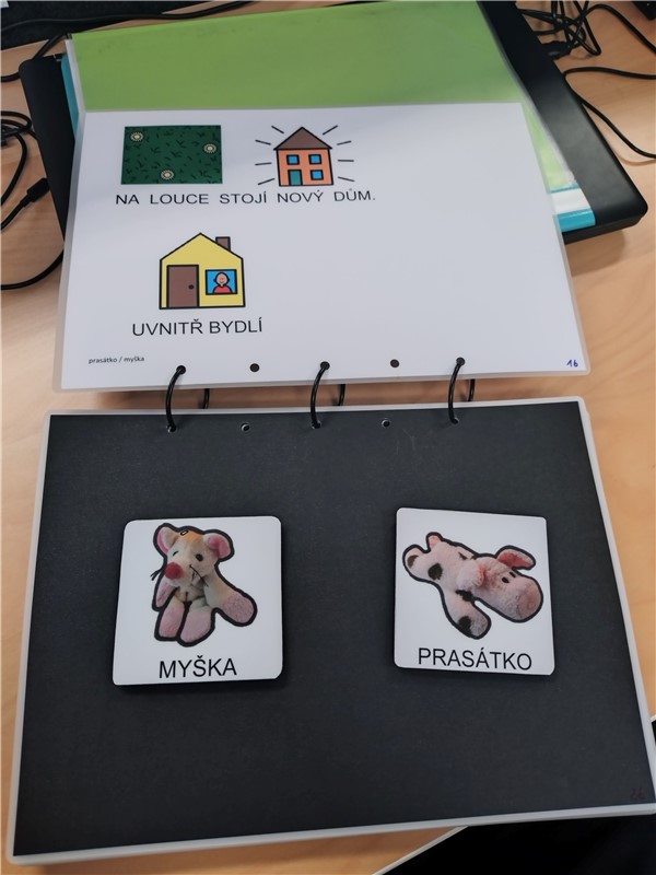 Při této aktivitě využijeme několik způsobů podpory řeči a komunikace – vyprávění pohádky doprovázejí jednoduché znaky (nejde o českou znakovou řeč, pouze pomocí znaků zdůrazníme klíčová slova příběhu), obrázky (fotografie s odstraněným pozadím) a předměty – dítě má tedy možnost zažít několik různých způsobů komunikace a můžeme sledovat, který mu nejvíce vyhovuje. Pohádka je interaktivní – dítě nesleduje pasivně příběh, ale dostává možnost výběru ze dvou nebo i více možností; tím příběh samo spoluvytváří.
