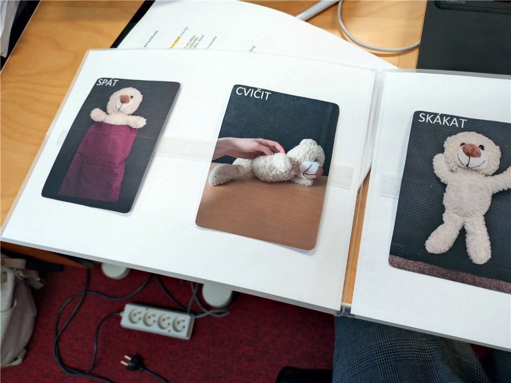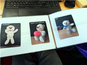 Při této aktivitě využijeme několik způsobů podpory řeči a komunikace – vyprávění doprovázejí jednoduché znaky (nejde o českou znakovou řeč, pouze pomocí znaků zdůrazníme klíčová slova příběhu), obrázky (fotografie s odstraněným pozadím) a předměty – dítě má tedy možnost zažít několik různých způsobů komunikace a můžeme sledovat, který mu nejvíce vyhovuje. Hra je interaktivní – dítě nesleduje pasivně, co se s medvídkem děje, ale dostává možnost výběru, co se s ním bude dít; tím hru samo spoluvytváří.