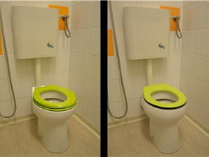 Rodiče někdy říkají, že úpravy v koupelně nejsou potřebné, protože dítě se tam orientuje i bez nich; to je určitě pravda, ve známém prostředí se dítě brzy orientuje, aniž by muselo zapojovat zrak. (Můžeme si to vyzkoušet sami na sobě – i když si v koupelně zhasneme, bez problémů najdeme umyvadlo, mýdlo, kartáček na zuby nebo ručník.) Proto je důležité si uvědomit, že tyto úpravy neděláme proto, abychom dítěti umožnili se v koupelně orientovat, ale proto, abychom je motivovali k používání zraku!