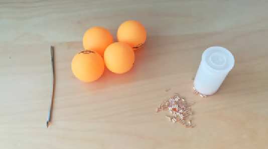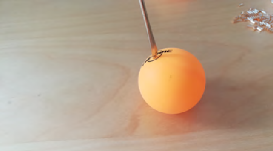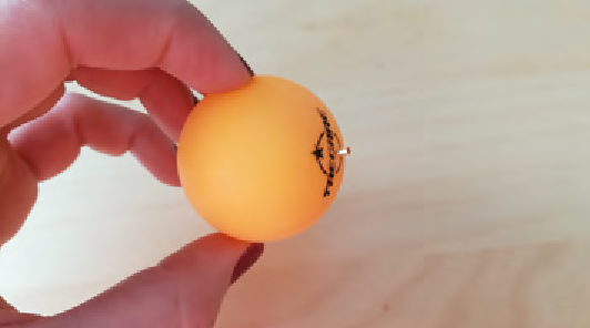 Do míčku uděláme dírku šídlem/jehlou – měla by být tak akorát velká na prostrčení korálku za použití mírné síly – pak není třeba dirku nijak zalepovat, korálek nevypadne.
