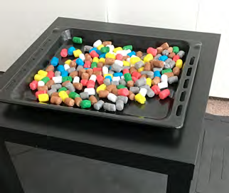 Další výhodou plechu je zvýšený okraj, který přímo vyzývá k tomu využít jej k senzopatické hře – ať už jde o přehrabování se v plastových kouscích, barevné rýži, čočce či kinetickém písku. Dítě tak můžeme vést nejen ke stimulaci hmatu a úchopu, ale i v kreslení do sypkého materiálu, které napomáhá při rozvoji grafomotoriky.