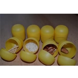 Kindervajíčka naplníme materiálem k ozvučení, vždy 2 kindervajíčka se stejným obsahem. Je důležité, aby bylo materiálu ve vajíčku vždy stejně, např. dva malé korálky, půl lžičky soli, jedna fazole… Sami se můžete zaposlouchat, jak veliký je rozdíl mezi jedním zrnkem rýže a půl lžičkou rýže.
