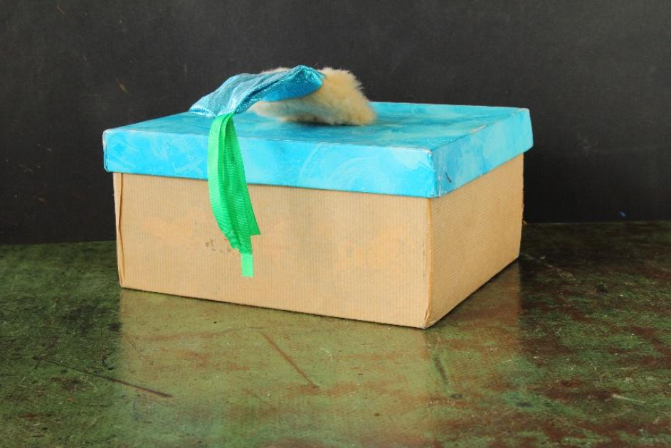 Dále potřebujeme vhodnou nádobu s otvorem ve víku, ze které bude dítě látkového hada tahat. K tomu poslouží krabice od vlhčených ubrousků s odklápěcím víkem, obyčejná papírová krabice od bot nebo jakákoli jiná dóza.
