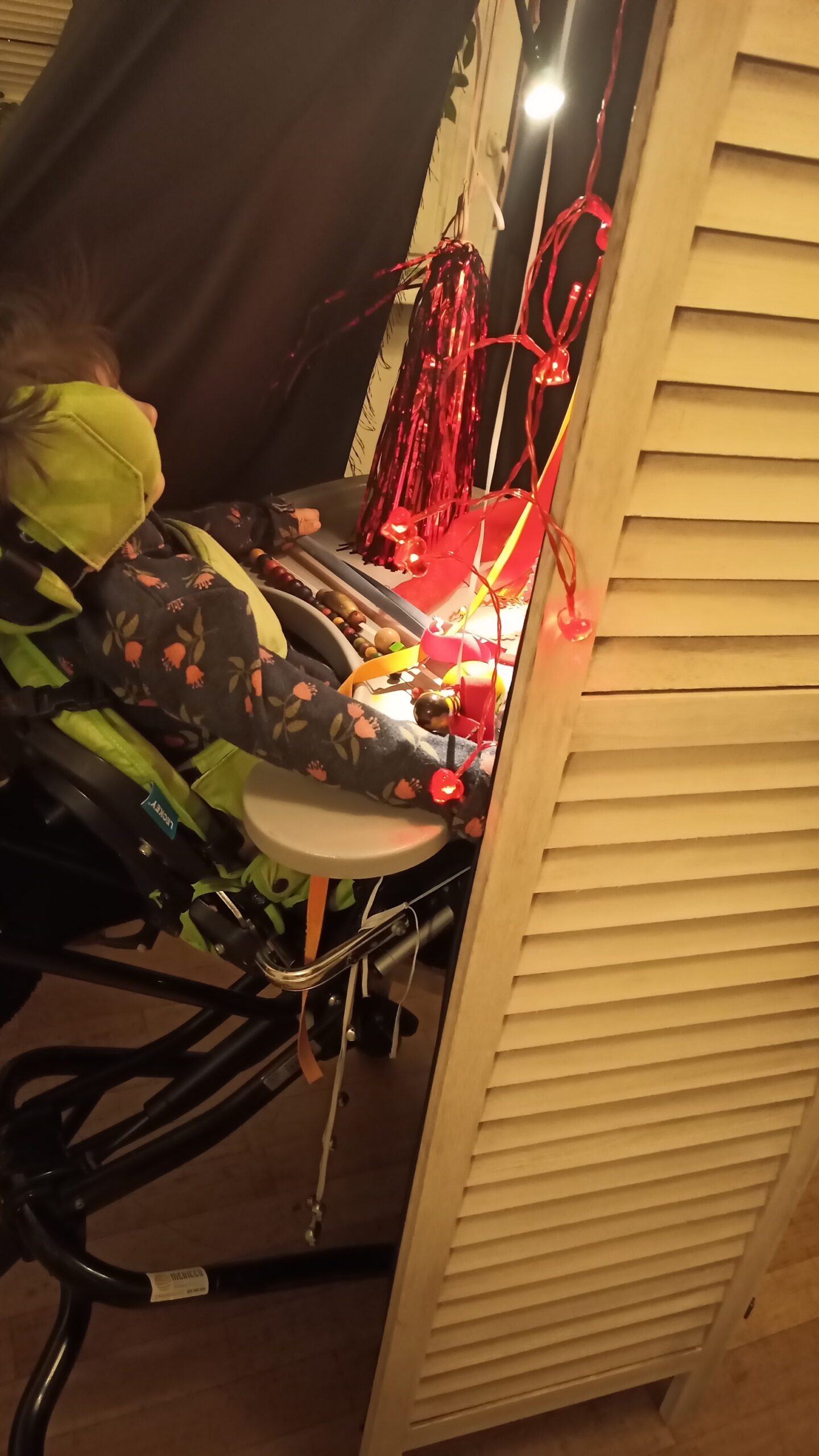 Dítě lze do paravánu umístit v židličce nebo ortéze pro sed.