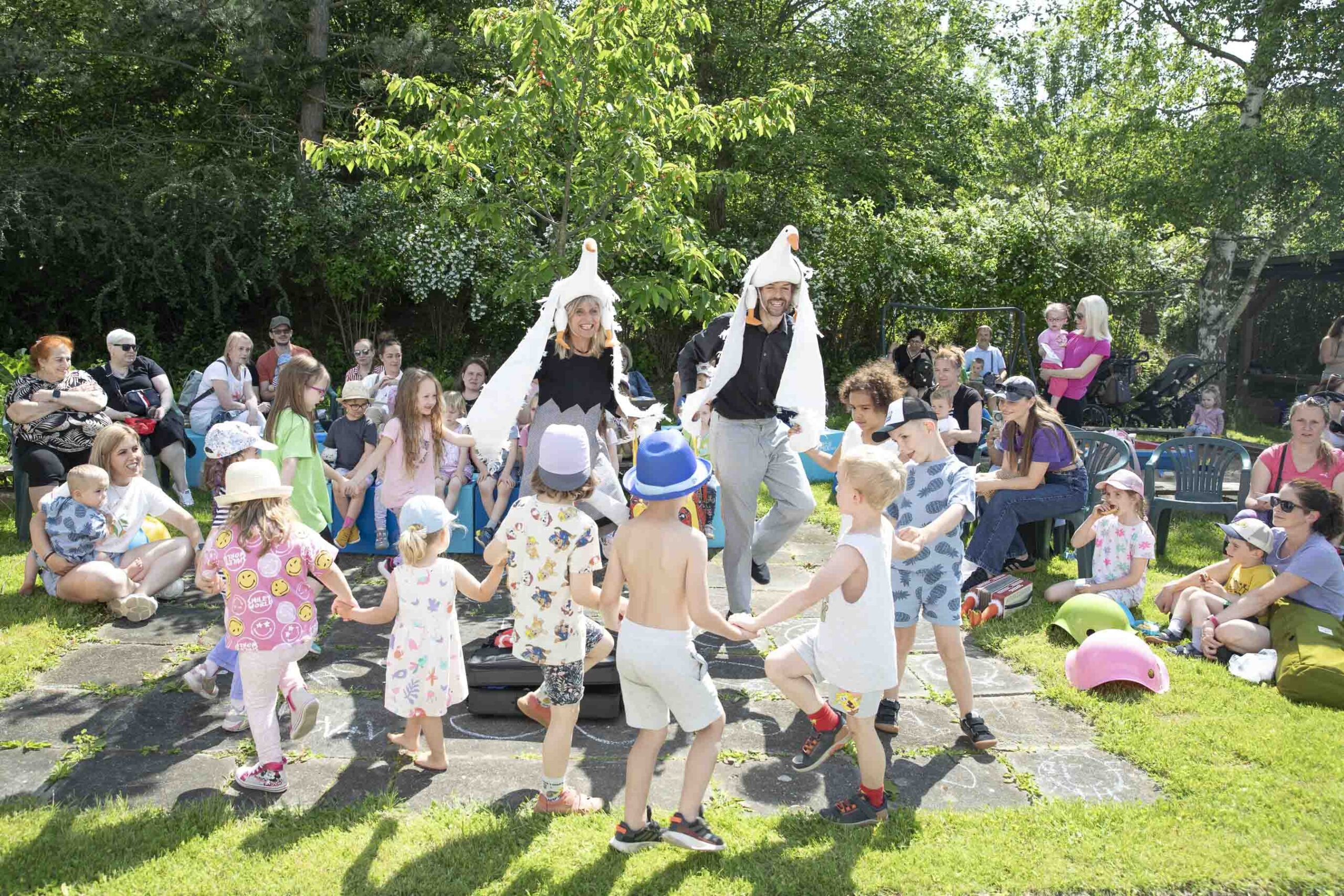 Každý rok v červnu pořádáme pro současné i bývalé klientské rodiny zahradní slavnost – od té doby, co sídlíme na Chodově, akce probíhá v prostorách Centra Filipovka. Vždy je připravený program pro klientské děti a jejich sourozence, například divadélko, výtvarná dílna, vodní koutek či trampolína. Pro návštěvníky je připravené občerstvení, opékají se buřty a rodiny často samy přinesou ty nejlepší napečené dobroty.